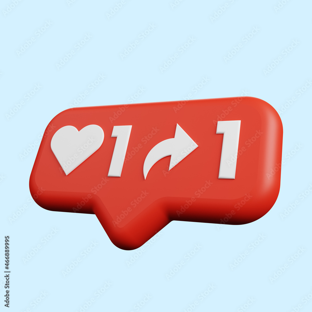 Foto 3d illustration of social media notification concept slightly tilted icon follow
