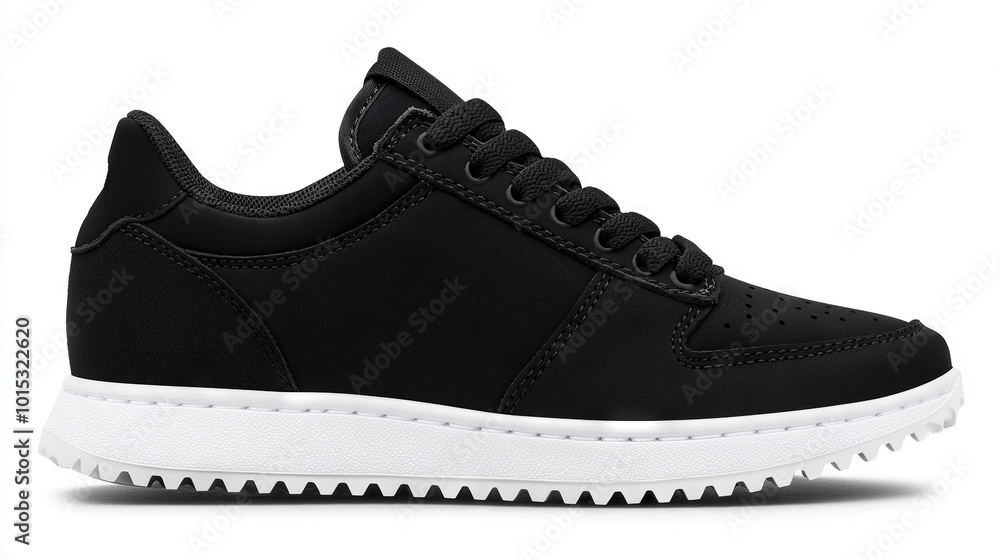 Foto A black sneaker featuring white soles and an upper part with white outsteps