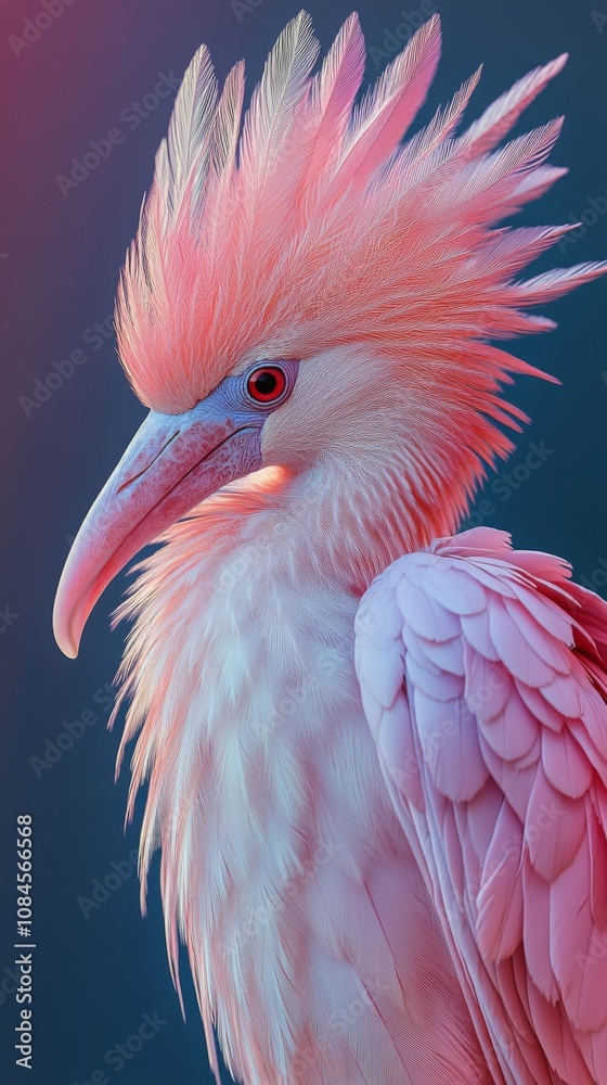 Foto A close up view of a uniquely colored bird with bright pink feathers against a n