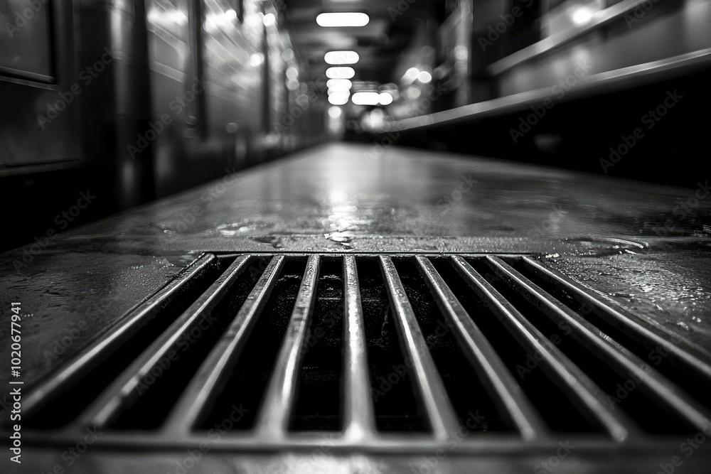 Foto A Low Angle View of a Metal Drain in a Dark, Wet Environment