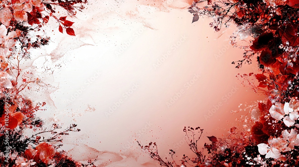 Foto A photo of a red and white background with red and white flowers on the left s