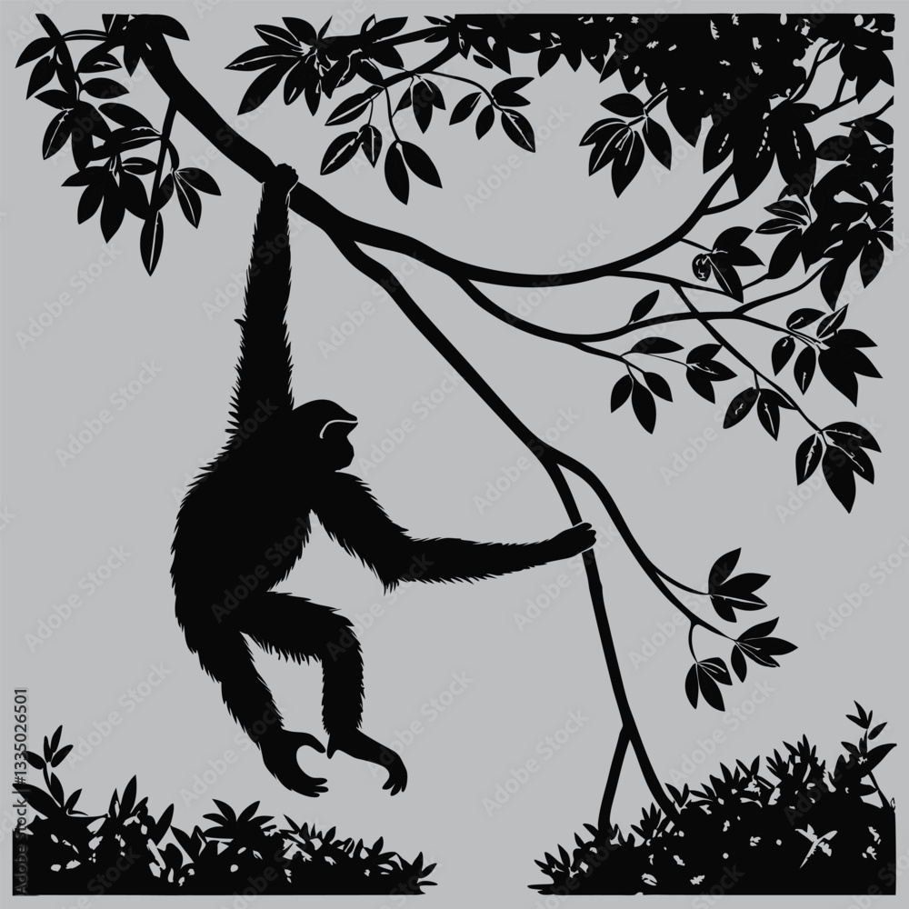 Adesivo murale a gibbon swinging through trees silhouette vector design art and illustration