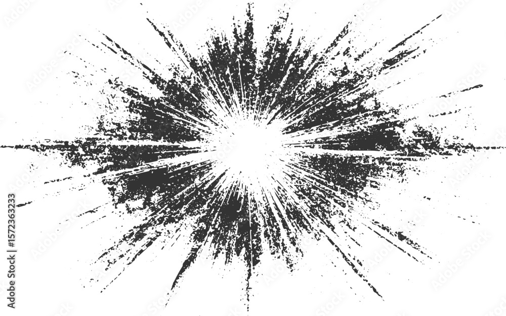 Adesivo murale Black abstract starburst explosion splatter grunge texture white