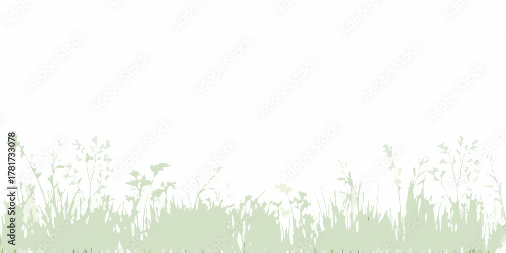 Adesivo murale Softly blended green grass and wildflower silhouettes against a clean white back