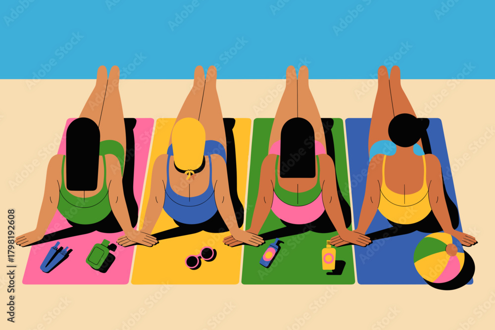 Adesivo murale Sun-Kissed Friends Enjoying a Relaxing Day at the Beach in Vibrant Towels Under