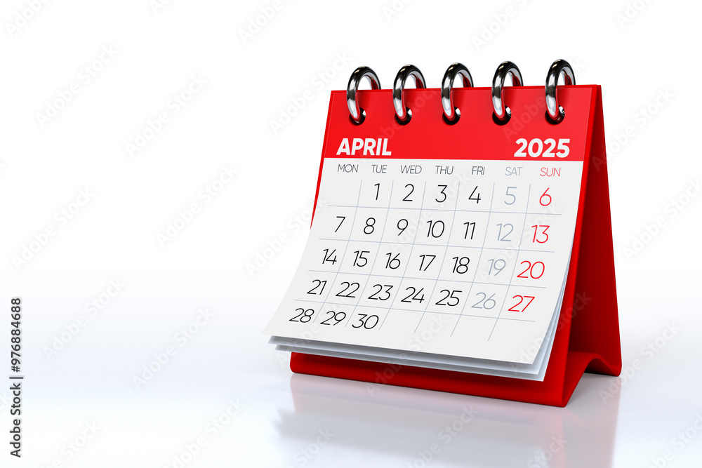 Foto April 2025 Calendar. Isolated on White Background. 3d Rendering