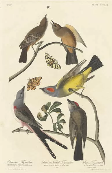 Arkansaw Flycatcher, Swallow-tailed Flycatcher and Says Flycatcher, 1837