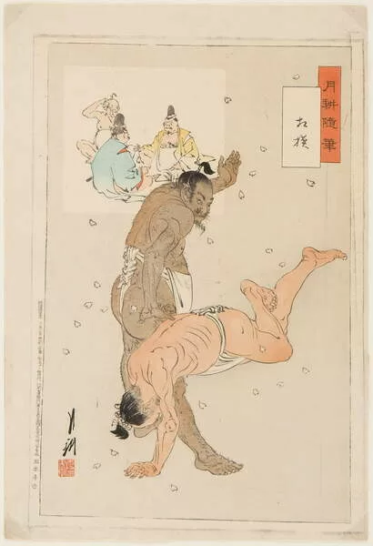 Adesivo murale Combat de lutteurs de sumo. Estampe de Ogata Gekko