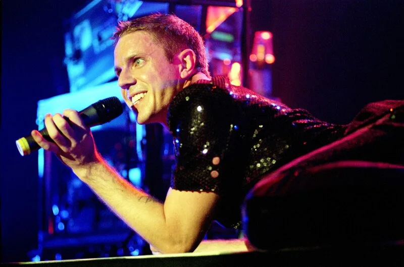 NETHERLANDS - APRIL 22: HEINEKEN MUSIC HALL Photo of SCISSOR SISTERS, Scissor Sisters, Heineken Music Hall, Amsterdam, Nederland, 22 april 2007, Pop, disco, gay, de zanger kijkt, terwijl hij met de, microfoon in zijn handen op het podium ligt, met een waanzinnige blik in zijn gezicht de zaal in (Photo by Peter Pakvis/Redferns)