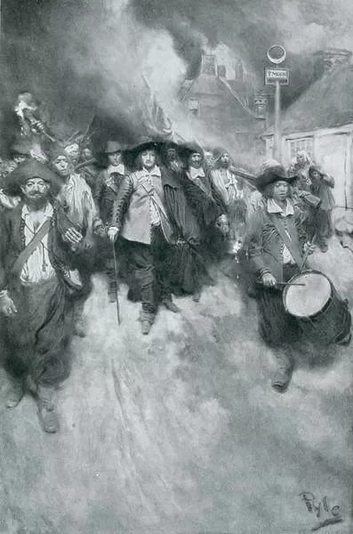 The Burning of Jamestown, 1676, illustration from 'Colonies and Nation' by Woodrow Wilson, pub. in Harper's Magazine, 1901
