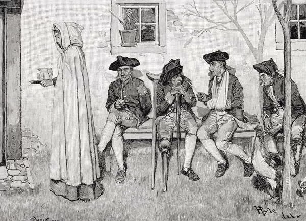'The Wounded Soldiers Sat Along the Wall', illustration from Harper's Magazine, October 1889