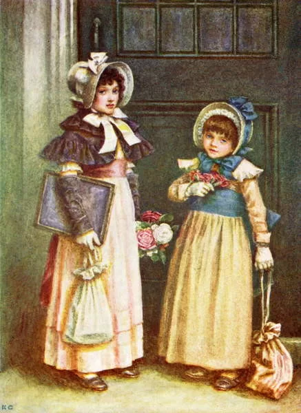 Adesivo murale 'Two girls going to school' by Kate Greenaway.