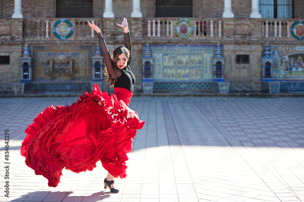 Foto Beautiful woman dancing flamenco in a square in Seville, Spain