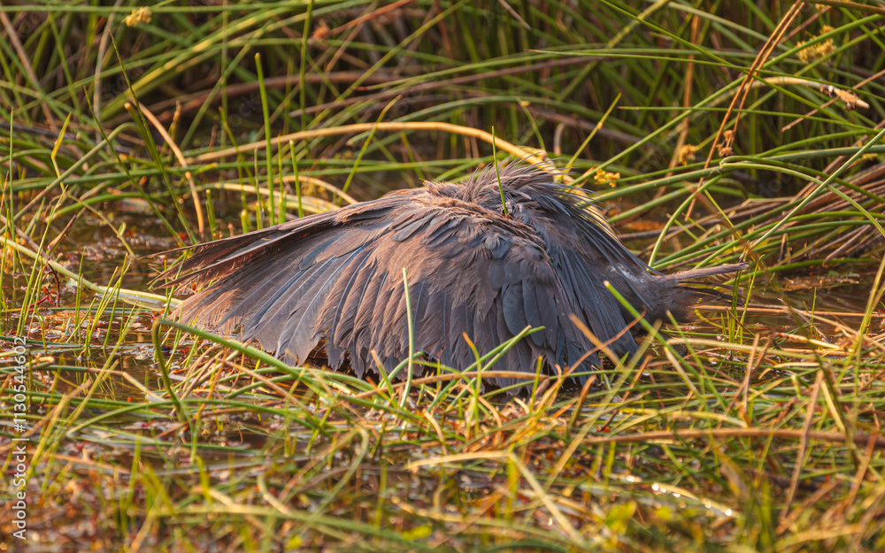 Carta da parati Black heron (Egretta ardesiaca) showing its hunting technique of canopy feeding