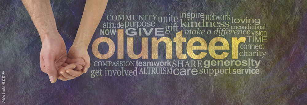 Carta da parati We can volunteer together - male hand cupped by a female hand making the V of VO