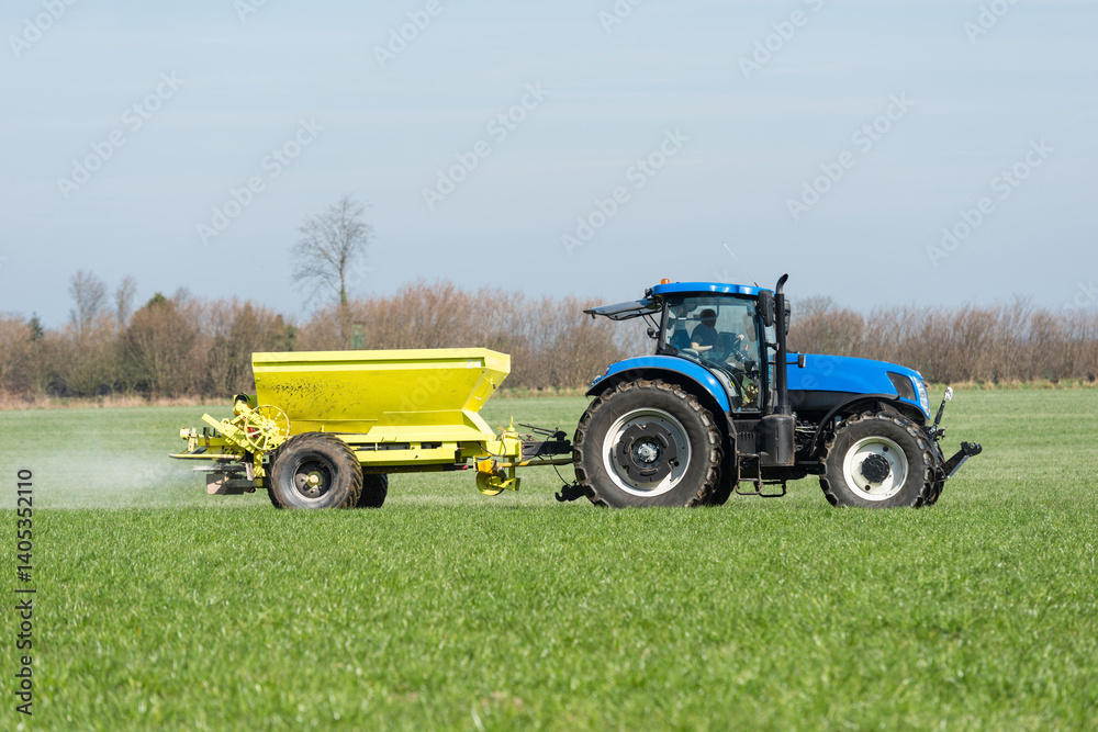 Carta da parati Tractor with fertiliser spreader in the grain field
