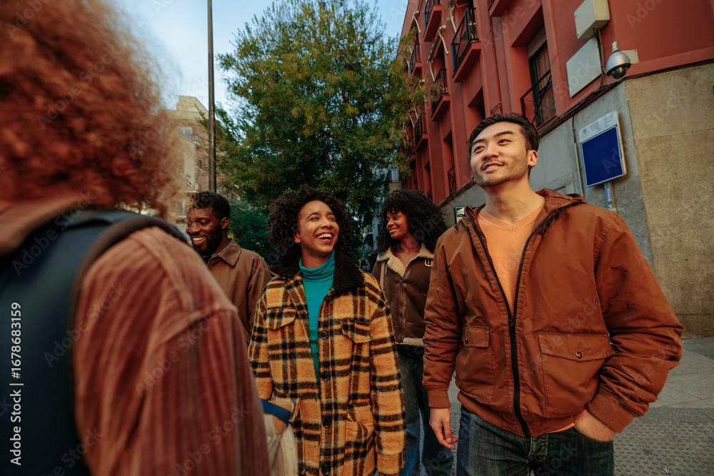 Carta da parati Group of young students walking and talking together in the city