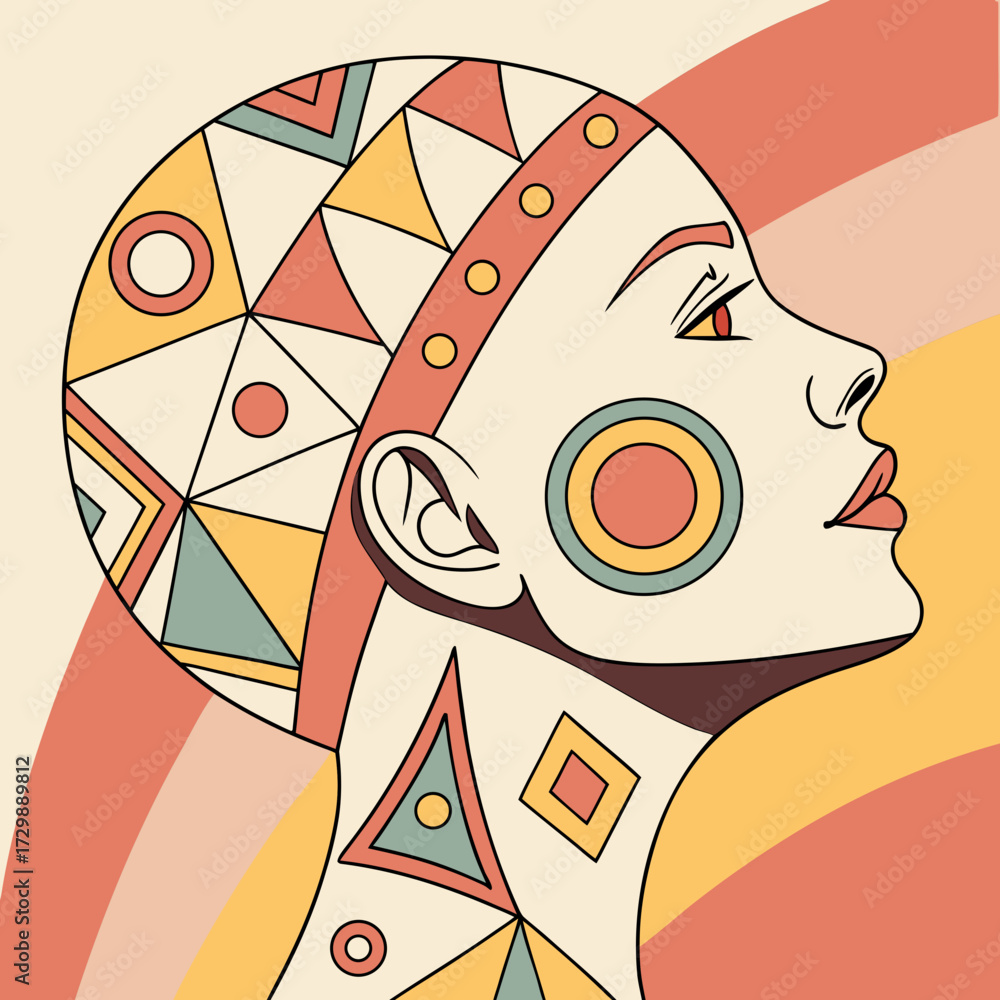 Carta da parati Stylized profile of a woman s face adorned with geometric patterns and tribal ma