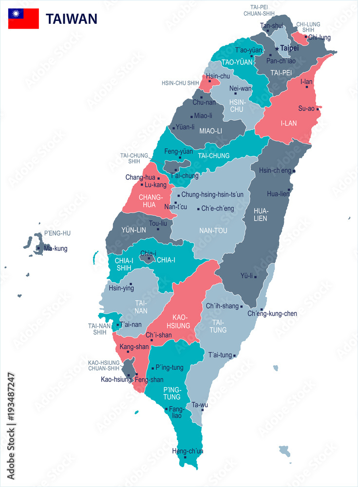 Carta da parati Taiwan - map and flag - Detailed Vector Illustration