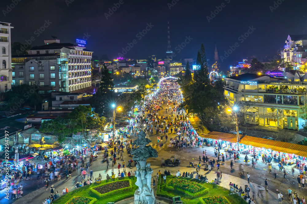 Carta da parati Da Lat, Vietnam - May 12th, 2017: Da Lat Market night skyline night view with li