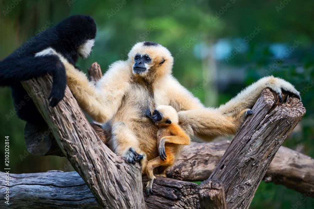 Carta da parati white cheeked gibbon or Lar gibbon.