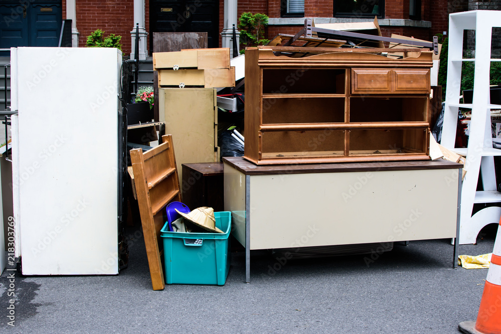 Carta da parati Items and old furniture on street outside house moving day or getting rid of jun