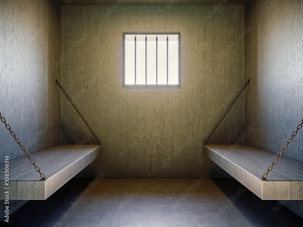 Carta da parati View of the prison cell with sun shining through the window, 3d Render, 3d Illus