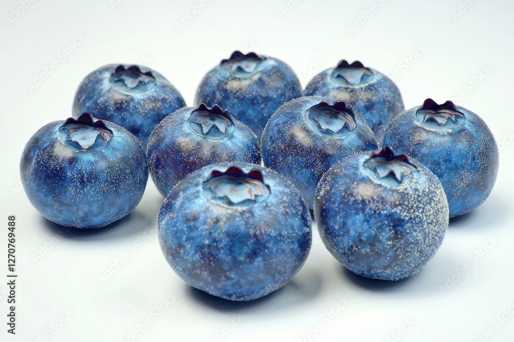 Foto Close-up shot capturing the vibrant and juicy texture of fresh blueberries, showcasing their deep blue color and inviting surface bloom on a plain white background