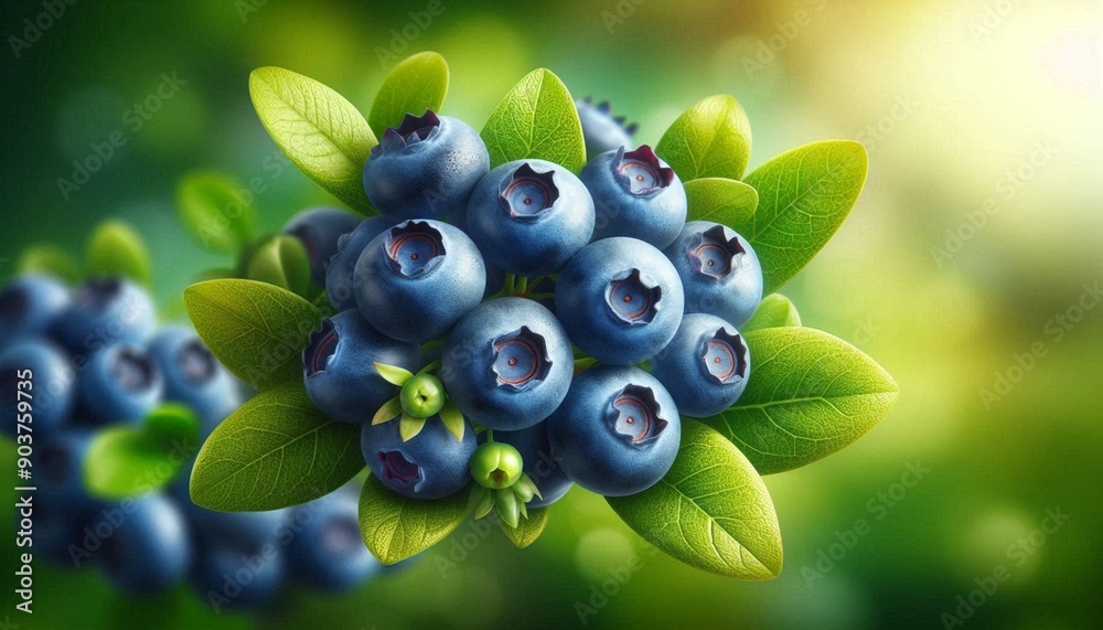 Foto Cluster of Ripe Blueberries with Soft-Focus Background in a Natural Outdoor Setting Close Up