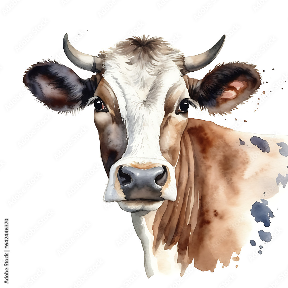 Foto cow, made of watercolor, gouache paint, white background, isolated, generative a