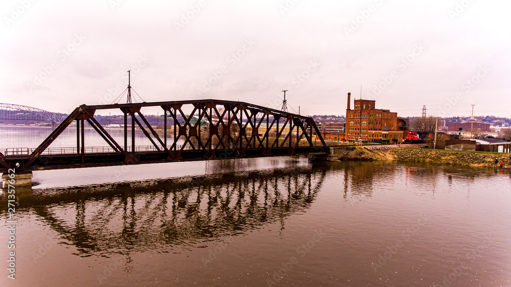 Foto Flooded Mississippi River Railroad Bridge crosses near Brewery