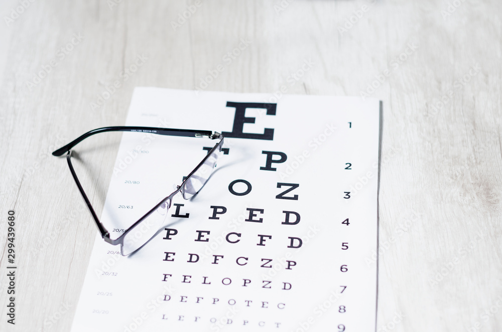 Foto glasses and Eyeglasses on table of check of vision close up - Myopia or hyperopi