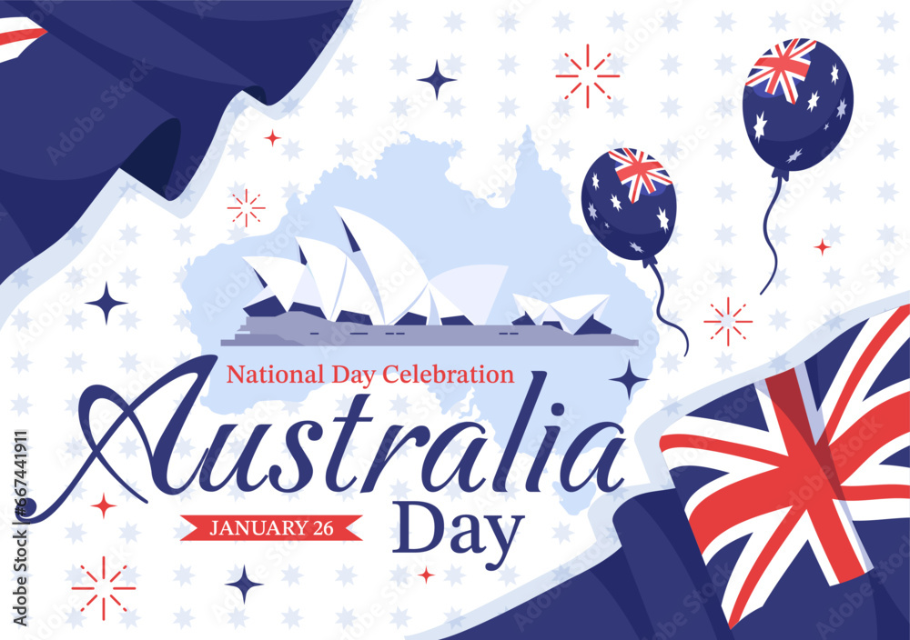 Foto Happy Australia Day Vector Illustration on 26 January with Map and Australian Fl