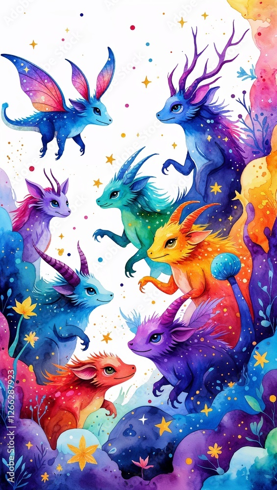 Foto Magical Creatures in a Colorful World watercolor in Fantasy & Abstract on plain