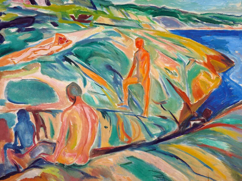 Quadro su tela Bathing Men on the Rocks (Male Nude) - Edvard Munch