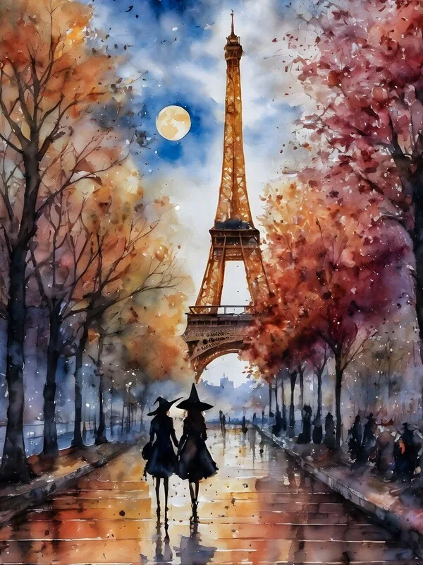 Quadro su tela Best Friend Witches in Paris - by Lyra O'Brien
