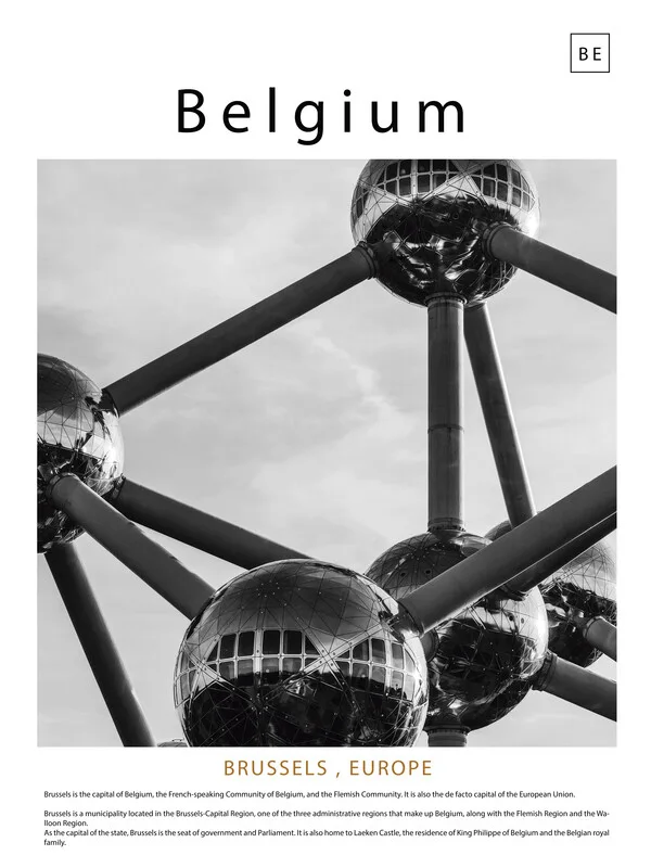 Quadro su tela Black and white cityscape of Brussels