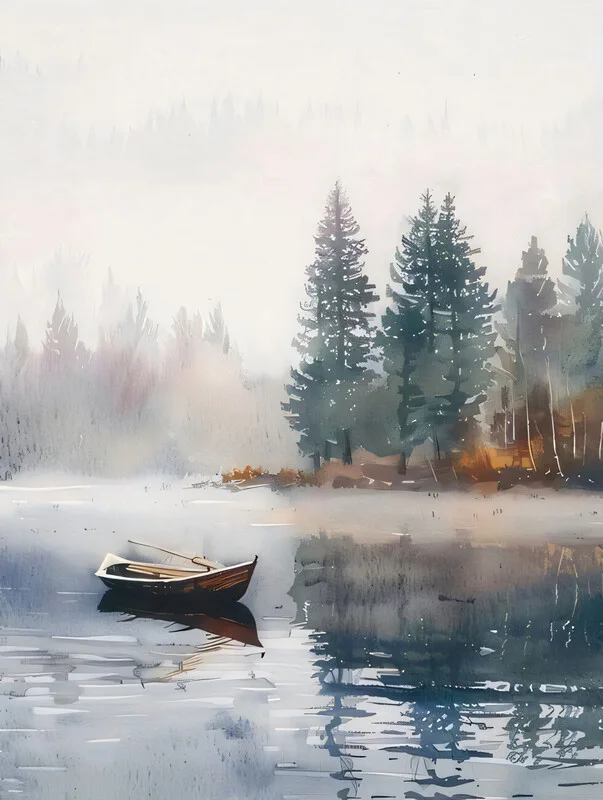 Quadro su tela Boat on tranquil lake