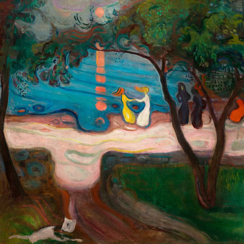 Adesivo murale Dancing on the Beach (Night Landscape) - Edvard Munch