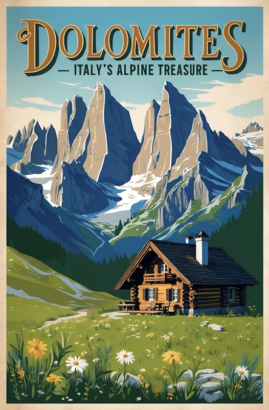 Quadro su tela Dolomites Vintage Travel Poster – Italy’s Alpine Treasure