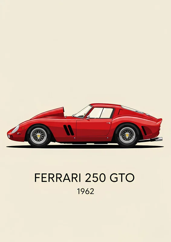 Quadro su tela Ferrari 250 GTO 1962 Classic Red Sportscar Illustration