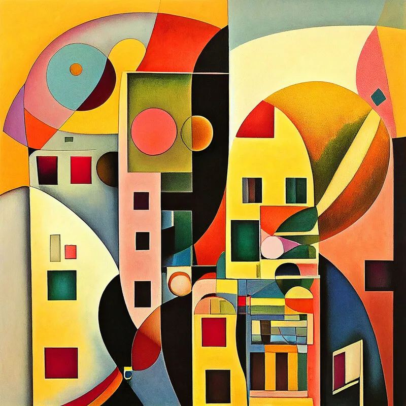 Adesivo murale Geometric architectural shapes painting, canvas art print
