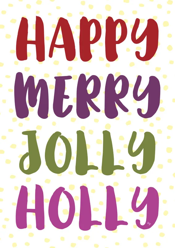 Quadro su tela Happy Merry Jolly Holly Xmas quote