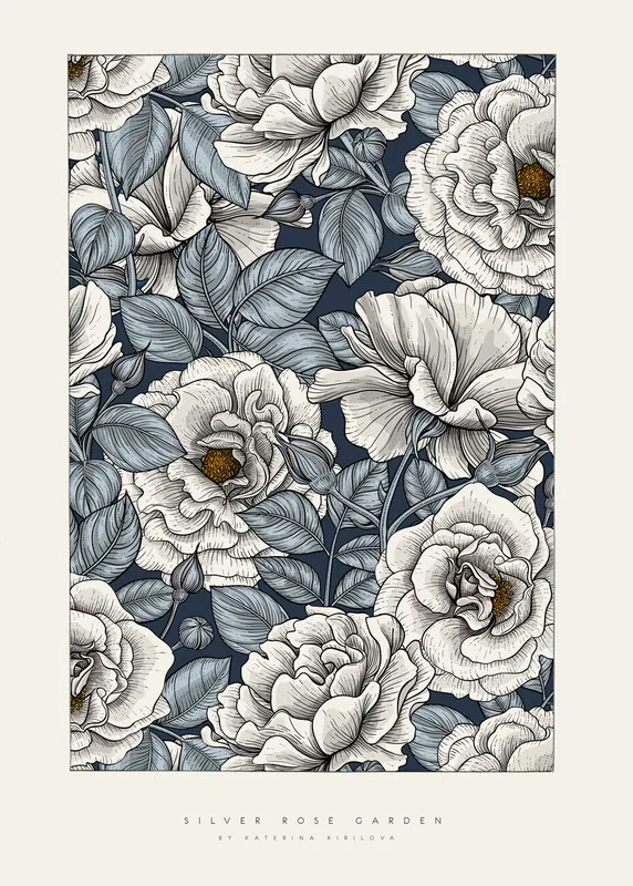 Adesivo murale Katerina Kirilova - Silver Rose Garden