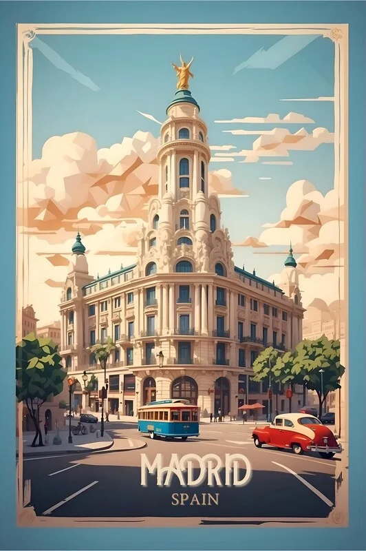 Adesivo murale Madrid Vintage Retro Travel Art