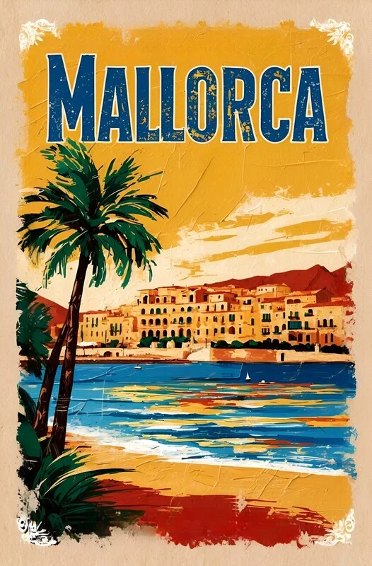 Quadro su tela Mallorca Memories: Retro Drawing Celebrating the Island