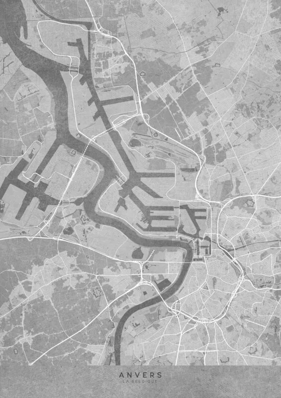 Poster Map of Antwerp (Belgium) in gray vintage style