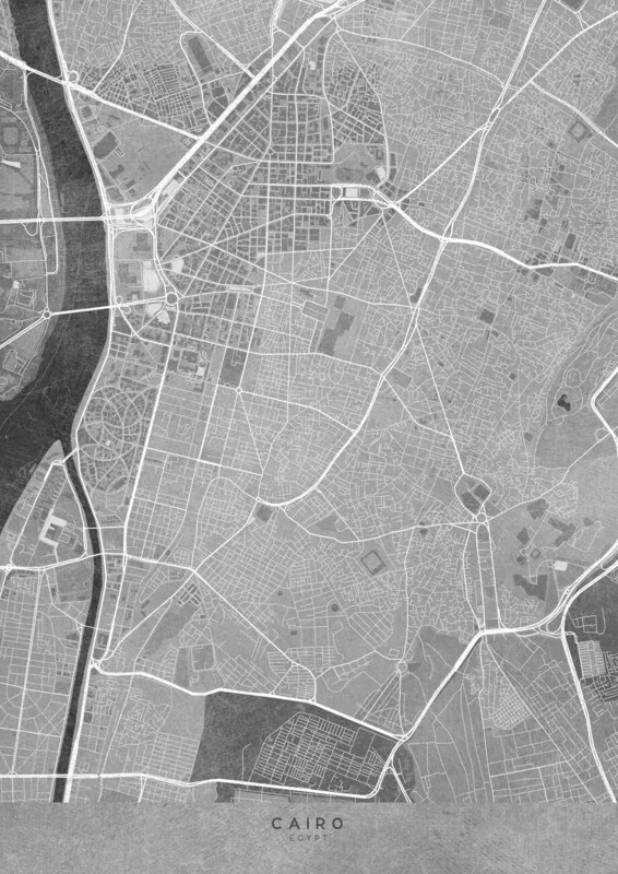 Poster Map of Cairo (Egypt) in gray vintage style (II)