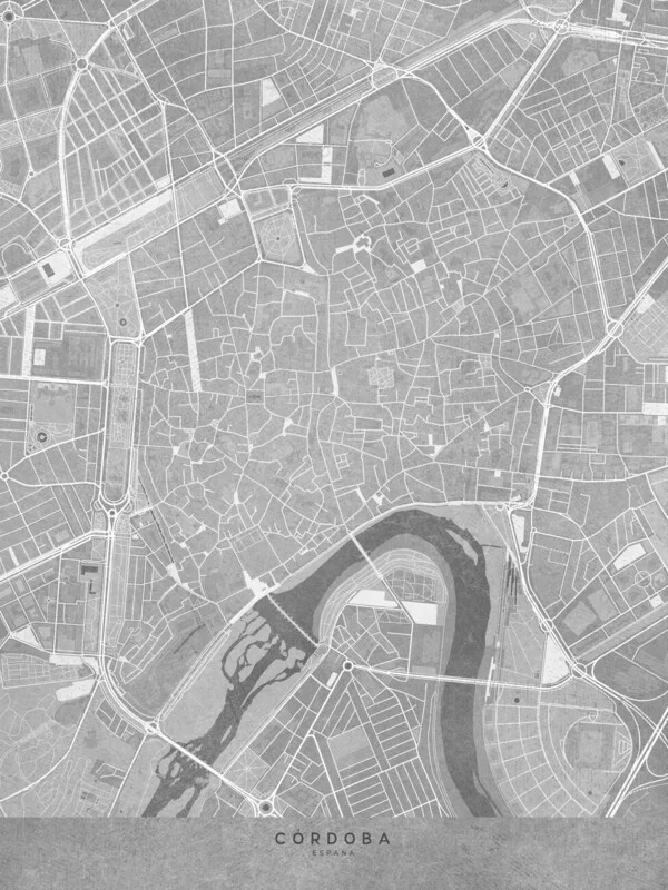 Poster Map of Córdoba downtown (Spain) in gray vintage style