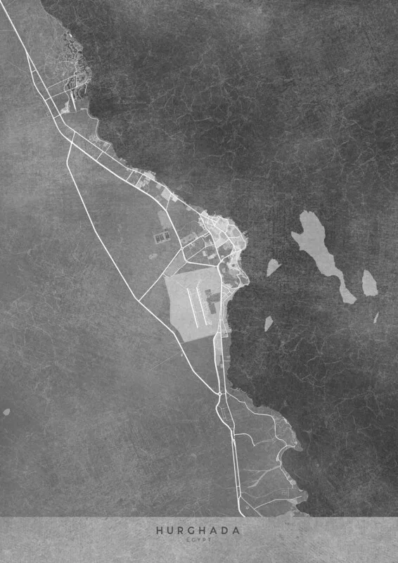 Quadro su tela Map of Hurghada (Egypt) in gray vintage style